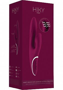 The HIKY RABBIT combines both vaginal penetration and advanced clitoral suction stimulation. The shaft of the toy has 10 intense vibration patterns, while the suction/clitoral motor can be adjusted to 4 different suction strengths. The sensation is vastly intensified by its unique detailed texture within the cup, which produces maximum stimulation.