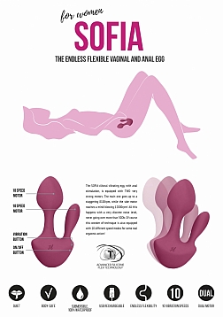 The fabulous JIL assortment always knows how to surprise people! The SOFIA clitoral vibrating egg, with anal stimulation, is equipped with TWO very strong motors. The main one goes up to a staggering 8100rpm, while the side motor reaches a mind-blowing 12000rpm! All this happens with a very discrete noise level, never going over more than 50Db. Of course this wonder of technique is also equipped with 10 different speed modes for some real orgasmic action! If you want the best of both worlds, the SOFIA should be your number one choice!