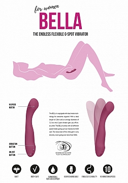 When putting the G" in G-spot is your favourite pastime, this pleasure-provider should be your toy of choice! The BELLA is equipped with dual-motor technology for awesome orgasms! With a total length of 20cm and an average diameter of 3,5 cm, this G-spot vibrator gets you off every time! The BELLA comes with 10 different speed modes going up to an impressive 8100 rpm. The noise level of this little gem Is very discrete, never going over more than 50Db. The BELLA will make you scream" for joy