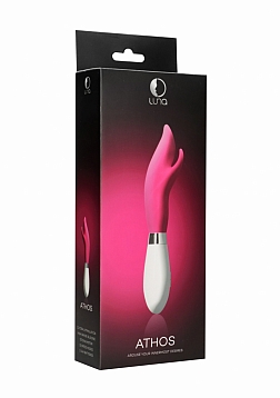 The ATHOS comes with an intriguing pointed top and an even more intriguing pointed clitoral stimulator for when it really matters! Made of high-grade silicone and ABS, the ATHOS comes with a 10-speed single motor revving up to a mind-blowing 7000 rpm, but stays very silent (>50db) at the same time! The ATHOS stands 21.9 cm tall and has a diameter of 3.9 cm