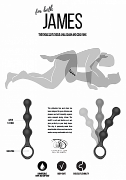 Developed with 100% liquid silicone, this phthalate free anal string has been designed for your ultimate anal pleasure and will intensify orgasms when removed during climax. The JAMES is soft and flexible so it adjusts perfectly to your body shape. This luxurious anal string consists of 3 ergonomically formed beads gradually increasing in size from 3cm (1.18") to 3.5cm (1.38") with a ring for easy and comfortable insertion and extraction.This ring is purposely made from ultra-flexible silicone and can also be used as a very comfortable cock ring!
