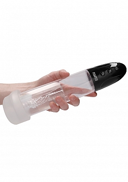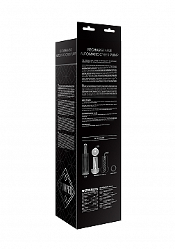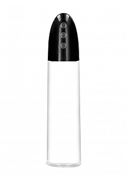 With a choice of 3 different sucking speeds, this pump always delivers! At the touch of a button, this RECHARGEABLE AUTOMATIC CYBER PUMP will create a super strong vacuum, giving a quick and powerful erection. The super-soft masturbation sleeve magnifies the view of your penis for unmatched visual stimulation. The pump always creates a tight seal for comfortable but very effective suction! This high-tech pump is really easy to disassemble and clean. Standing 31 cm (12.2") tall and with a chamber that can hold a length of 20 cm (7.9") it revs up to an impressive 3700 RPM at a very low noise level of less than 55dB. The inner girth is 6.1 cm (2.4").The built-in rechargeable battery needs 120 minutes for a full charge giving 120 minutes of fun playtime! This pump is NOT waterproof.r r HOW TO USE Lubricate the sleeve of the cylinder and your penis with a water-based lubricant before use. DO NOT use silicone lubricants. If you feel uncomfortable with the vacuum at any time, release some of the vacuum through the vacuum release button. To achieve the best result, you can apply some efficient techniques: such as: alternating the vacuum from time to time or making stroking movements after erection. r r CHARGINGr LED light flashes while charging, and glows solid when fully charged. WARNING: Please read product manual before using any type of vacuum pump or constriction ring. Stop using the devices immediately if you experience any pain or discomfort.