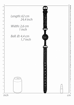 Silence your partner with this OUCH! Ball Gag, which is perfect for beginners and experienced bondage players alike. This tough phthalate-free ball gag comes with metal O-rings and has an adjustable buckle featuring 9 holes for easy adjustment. It measures 62 cm (24.4") in length and 2.5 cm (1.74") in width. The ball has a diameter of 4.4 cm (1.74"). Made from neoprene and faux-Leather, with an exquisite diamond pattern.