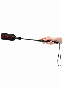 Leave a lasting impression on your partner. This short handled rectangular shaped crop is the perfect way to discipline your partner. Leave a lasting impression on your sub. The word SLUT is reversed so it will show up on their skin.