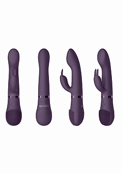This box features a Soft Vibrating Clitoral Bottom Base, lined with stimulating silicone bristles on one side and ribbed ring on the other for maximum pleasure. The base boasts a 10 speed motor that will rev up the vibrations to a toe-curling 15,000 rpm - all at less than 60 dB Noise Level. This combo box includes two interchangeable top attachments to go along with the base: a Clitoral Vibrator and a Rabbit Vibrator. Just click the attachment into the base, twist and you are ready to play! The Clitoral Vibrator attachment has a beautiful pointed head with two side-wings for extra stimulation. The Rabbit vibrator, has a flattened head for G-spot stimulation and two vibrating ears to give the clitoris some extra attention. Both base and attachments are made from medical grade silky-smooth silicone and ABS.