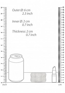 Made from super-smooth and flexible TPE the open-ended masturbator can be effortlessly flipped inside out. Easy-to-use, easy-to-clean and perfect for solo or partner play. The inner diameter measures 2cm (0.79"), the outer diameter 6.2cm (2.45") and the total height 4cm (1.58"). The masturbator can also be used as a bumper to stop full penetration for those who experience discomfort during intercourse, making it more enjoyable. The partner penetrating will still have the sensation of full insertion without having to try and hold back. Before use it is recommendable to lubricate yourself and the inside of the stroker with sufficient water-based lube for the best and most satisfying result!