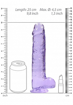 This REALROCK CRYSTAL CLEAR model has been designed with realistic balls for an enhanced lifelike experience. All come with a sturdy suction cup so you can stick it to practically any smooth surface. All REALROCK CRYSTAL CLEAR are phthalate-free, latex-free, body-safe and non-porous which makes them easy-to-clean and gives them a longer lasting durability. This model with balls stands 25cm (9.8") tall including the suction cup, has an insertable length of 19cm (7.5") and has a girth of 4.5cm (1.78").