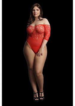 Nothing will say glamour like this lace high cut bodysuit. The stretchy lace make this beautiful suit fit like a glove. The rhinestones will make you sparkle and shine when you continue the Christmas party in the bedroom. This bodysuit is a perfect fit for sizes 1XL to 3XL. This bodysuit has an open crotch. You will be the perfect present this jolly season. Handwash in cold to warm water, air dry. Do not iron.