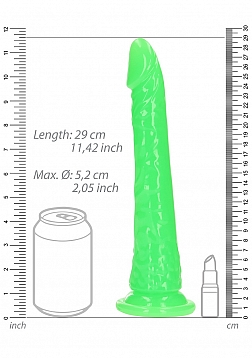 Ready for a GLOW IN THE DARK experience? Reach your finest climax in style with these beautifully shaped, glow in the dark dildos. Any light source will activate the fun. This dildo is suitable for anal and vaginal use! Finger-like precision stimulation, great for yummy anal stimulation, and definitely a clitoris friend? You’ll find all that and more in this dildo! The base functions as a suction cup for hands-free use, but also gives it the ability to be used in a harness. All REALROCK GLOW IN THE DARK dildos are phthalate-free, latex-free, body-safe and non-porous which makes them easy-to-clean and gives them a longer lasting durability.