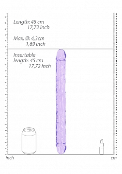 This model stands 17.7” (45 cm) tall including the suction cup, has an insertable length of 17.7” (45 cm) and has a girth of 1.7” (4,3 cm).