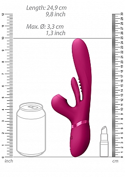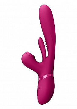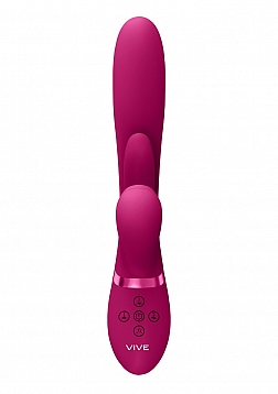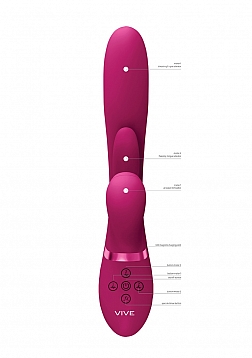 VIVE051 is in a class of its own . With three 10-function new generation F1 motors and its advanced technologies (three motors can be independently controlled): one innovative 10-function NG F1 thrusting motor for your G-spot, one first of its kind 10-function NG F1 flapping shaft motor and one 10-function NG F1 motor airwave technology for clitoral stimulation, it's sure to bring you to maximum heights of pleasure in all your erogenous zones. You can setup your toy with up to 1,000 distinctive settings. Made from silky smooth medical-grade silicone (hypoallergenic), it is totally waterproof (IPX7), and extremely quiet at under 60dB. This means you can use it wherever your heart desires! It contains a USB magnetic rechargeable lithium-ion battery. When fully charged with its USB cable, it will provide 60 minutes of passionate playtime. Just plug, charge and play! When you're getting close to climax, just one-touch of the special function climax button will immediately bring all the motors to full power/speed and, more importantly, bring you to an earth-shattering orgasm. All VIVE vibrators have a full 1-year warranty to protect your investment.