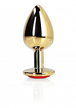 Heart Gem Butt Plug - Medium - Gold / Ruby Red..