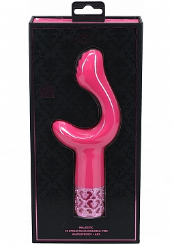 You don't need to be royalty to enjoy this elegant line. Hidden beneath it's silky-smooth medical grade silicone exterior lies a pedigree unmatched. The Majestic's G-Spot shape is perfect for internal and external stimulation that will bring you to royal ectasy. Its two magnetic fully rechargeable proprietary New Generation F-1 motors deliver mind blowing vibrations uniformly across the full surface of the toy. Don't settle for the common, choose to be royal.