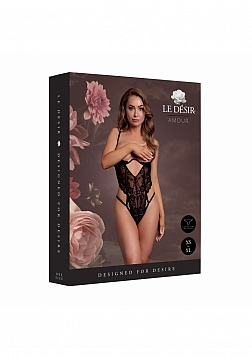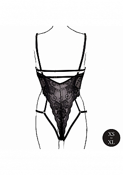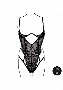 Release your inner seductress with our stunning lace open cup underwired bodysuit that will accentuate your curves and ignite passion. This exquisite piece features beautiful lace detailing that adds a touch of romance, while the underwired cups provide support and accentuate your silhouette. The adjustable sliders ensure a perfect fit so that you feel secure and comfortable with every movement. The bodysuit beautifully accentuates your hips and shows off your back. It creates an irresistible shape that captivates from every angle. Perfect for intimate evenings or special occasions, this bodysuit invites you to show off your sensuality. Slip into this enchanting piece and let it be your secret to creating unforgettable moments full of seduction and desire. Available in sizes XS to XL.